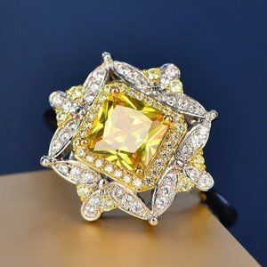 *NEW 925 Sterling Silver Citrine Diamond Halo Ring