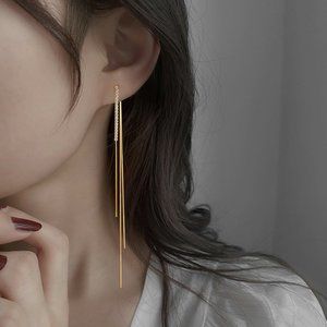 #NEW 925 Sterling Silver Diamond Chain Drop Earrings