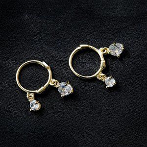 #NEW 925 Sterling Silver Diamond Drop Round Hoop Earrings