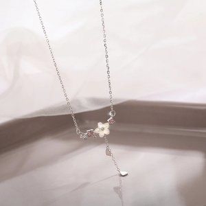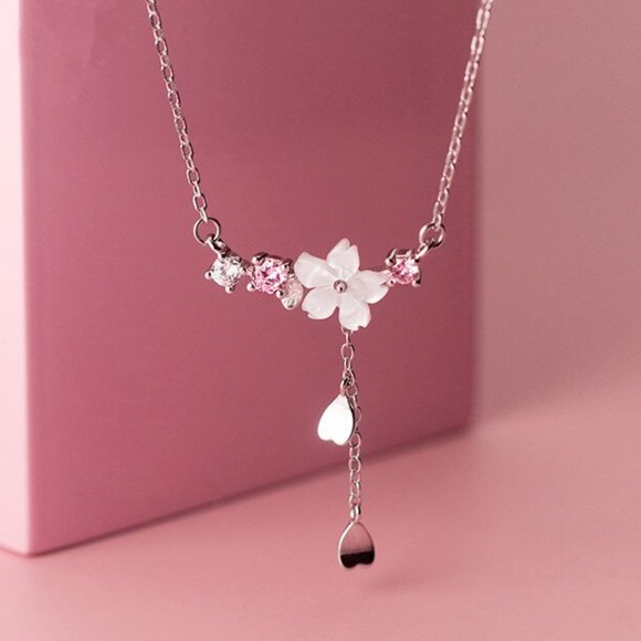 *NEW 925 Sterling Silver Diamond Flower Necklace Y