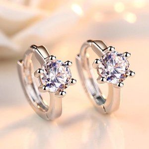 NEW 925 Sterling Silver Diamond Hoop Earrings