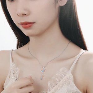 NEW 925 Sterling Silver Diamond Moon Drop Necklace