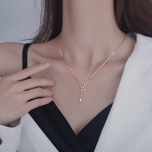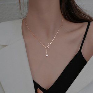 #NEW 925 Sterling Silver Diamond Star Drop Necklace