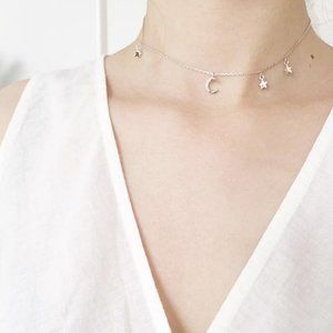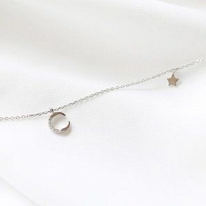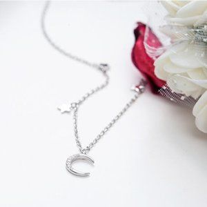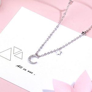 NEW 925 Sterling Silver Diamond Star Necklace H
