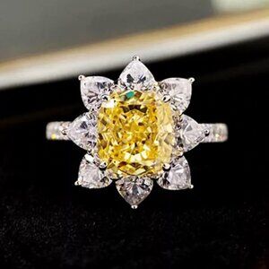 NEW 925 Sterling Silver Diamond Sunflower Ring Flower Citrine Ring