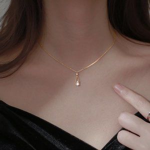 #NEW 925 Sterling Silver Diamond Waterdrop Necklace