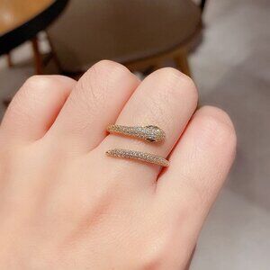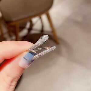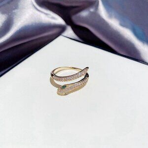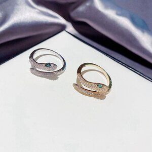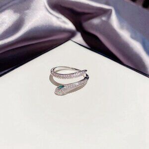 NEW 925 Sterling Silver Emerald Diamond Snake Serpent Adjustable Ring