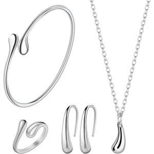 NEW 925 Sterling Silver Jewelry Set for Women Teardrop Pendant Necklace …