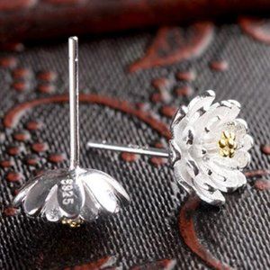 NEW 925 Sterling Silver Lotus Flower Stud Earrings