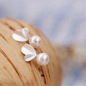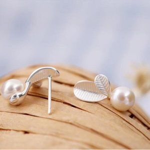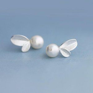 *NEW 925 Sterling Silver Pearl Leaf Earrings