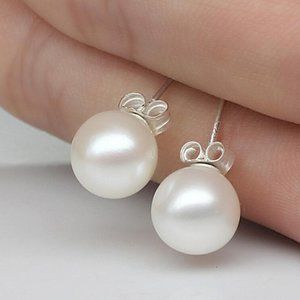 *NEW 925 Sterling Silver Pearl Stud Earrings