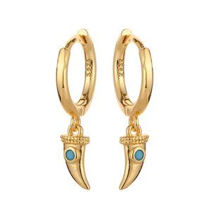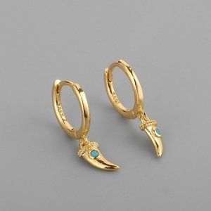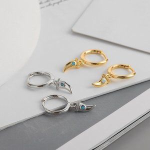 #NEW 925 Sterling Silver Turquoise Horn Drop Round Hoop Earrings