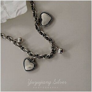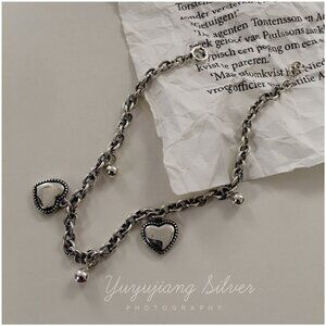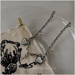 #NEW 925 Sterling Silver Vintage Heart Bead Bracelet
