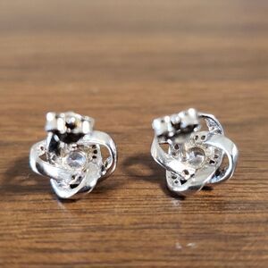 2 925 sterling silver with cubic zirconia love knot post earrings with backs. Earrings are stamped 925 on the post (and very hard to photograph) and on the backs.