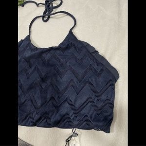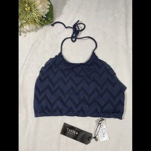 NEW $94 TAVIK Monroe Ruffle High Halter Bikini Top in Blue [SZ Medium ]