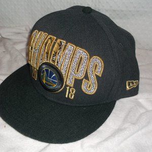 New 9fifty New Era Snapback NBA hat - One Size Fits most. Charcoal gray with gold embroidered Golden State Warriors 2018 Champs. Gold colored snap-back. Made of 80% acrylic/20% wool.