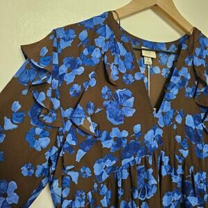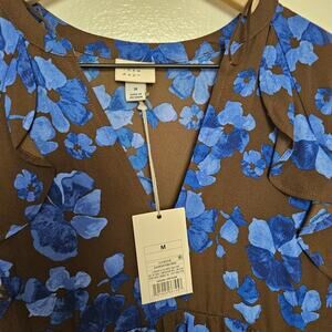 NEW A New Day Chiffon Floral Maxi Pairie Dress M Blue Brown NWT