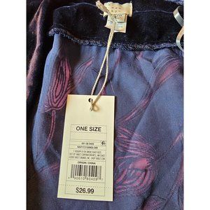 New with tag. Nice navy blue velvet and sheer top. No buttons, no tie just a lightweight coverup. Size One size fits most.