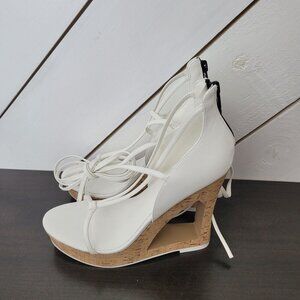 AAJ By Aminah Nina Lace-Up Architectural Wedge White 9 Sandals