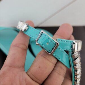 NEW AAJ By Aminah Womens Viktoria Embellished Flate Teal 6M Ankle straps Sandals
