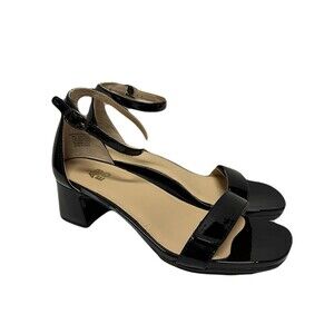 NEW ABEO Womens Size 9.5 Avenue Strap Block Heel Sandal Black Patent Leather