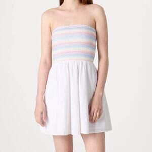 NEW ABERCROMBIE FITCH White Rainbow Strapless Straps Tube Tank Top Mini Dress M