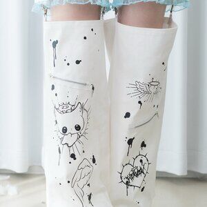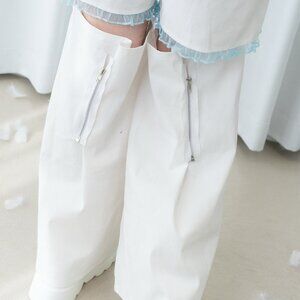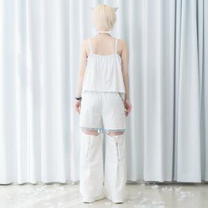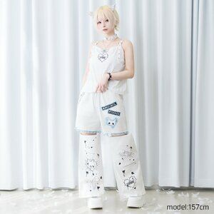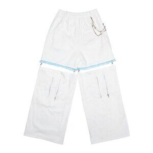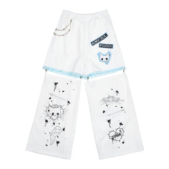 Bring heavenly punk vibes with the Baby Punk Angel Punk Detachable Cargo Pants from ACDC Rag. These statement streetwear rave bottoms feature a soft white polyester base with full front Angel Punk graphic detail, metal chain and zipper accents, dual front pockets, detachable panels for a versatile look, organza ribbon trim, and a comfy elastic waistband with a straight wide-leg fit. Born from the underground streets of Harajuku, Japan, these pants are made for bold, rule-defying style. If they call your name, don’t wait — grab them before they disappear. #HarajukuLove