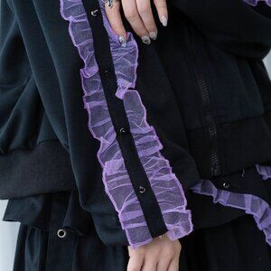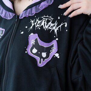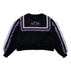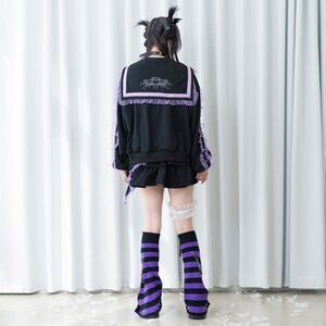 Summon your inner troublemaker with the Baby Punk Devil Punk Sailor Zip Jacket from ACDC Rag. This wickedly cute piece blends dark rebellion with Harajuku flair—featuring graphic print detail, soft organza ruffles, and a bold sailor collar twist. With front slip pockets, long sleeves, and an oversized unisex fit, it's finished with a secure zipper closure for easy attitude on the go. Straight from Tokyo’s underground fashion scene—raise some hell before it’s gone. #HarajukuLove