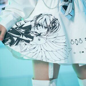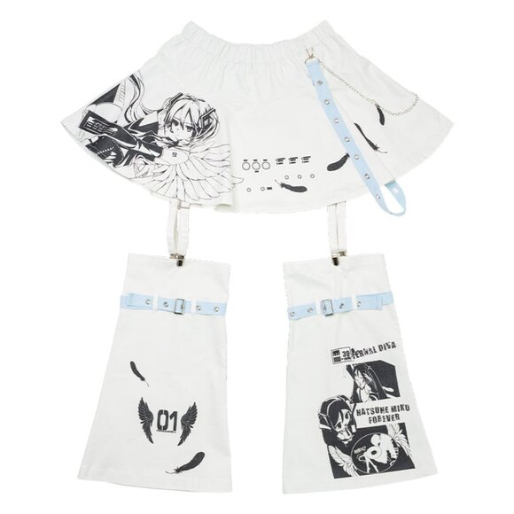 Bring iconic Vocaloid vibes with the Hatsune Miku Forever White Blue Skirt with Leg Warmer from ACDC Rag. This statement anime-inspired streetwear set features a full graphic print on pastel white-and-blue skirt with adjustable elastic waistband, matching detachable leg warmer adorned with metal chain and multiple strap detail for that extra pop of kawaii energy. Straight from the colorful streets of Harajuku, Japan, this set is perfect for festival fits, cosplay-ready looks, and everyday anime street style. If it sings to your style, don’t wait — grab it before it disappears. #HarajukuLove
