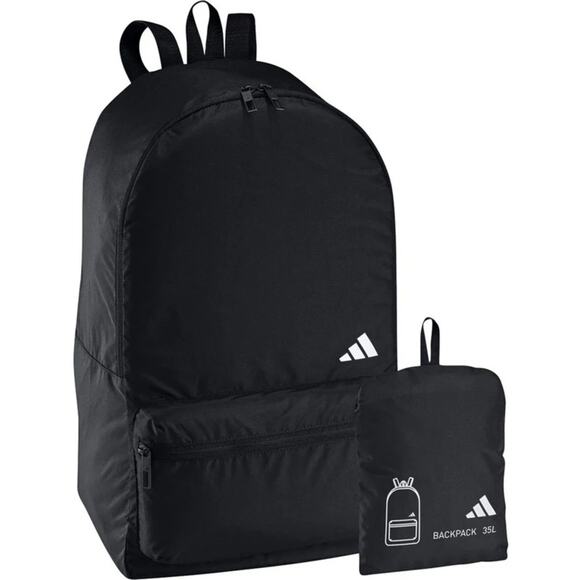 NEW ADIDAS Black White AG Packable Fold Up Backpack Zip Travel Pouch Bag Carryon