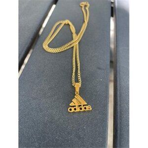 NEW ADIDAS INSPIRED LOGO GOLD PLATED METAL NECKLACE 20" WITH ADJUSTER