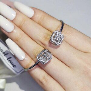NEW ADJUSTABLE DIAMOND BANGLE S925 STERLING SILVER BRACELET