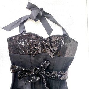 NEW ADORE ME Black Beaded Garter Corset Top SMALL, MEDIUM, LARGE Halter Slimming Belt Lingerie - With Garters - Beaded Sequin Sparkle Halter - Belted - Baby Doll - Bling Sparkle