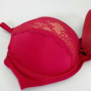 NEW ADORE ME Red Nude Push Up Bra 34DD Intimate Inner Padded Lace Bow Adjustable