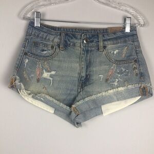 NEW AEO Distressed High Rise Embroidered Festival 100% Cotton Size 2 Jean Shorts