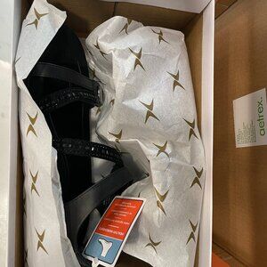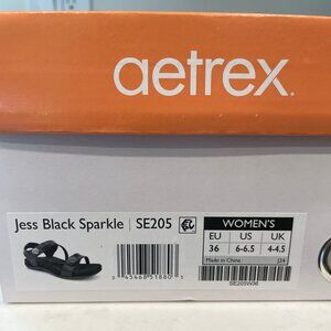 NEW AETREX women's jess adjustable quarter strap sandal in black sparkle