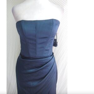 NEW AFTER SIX Midnight Blu CORSET Strapless DRAPED Charmeuse COLUMN Satin GOWN 8
