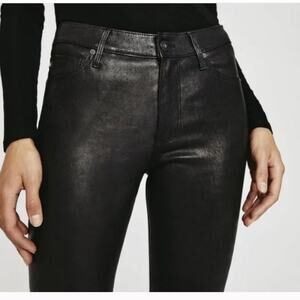AG Adriano Goldschmied Lamb Leather Farrah Skinny High Rise Jeans In Super Black- Women's size 28