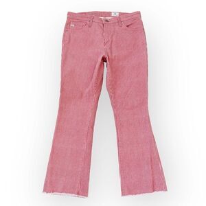 NEW AG Jeans Twiggy Jodi Crop Flare Pink Stripe Raw Hem Jeans
