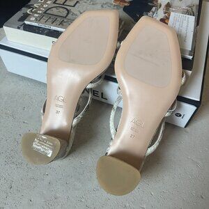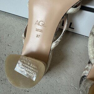 NEW AGL Leather Snakeskin Strappy Block Heel Mules Sandal Size 37