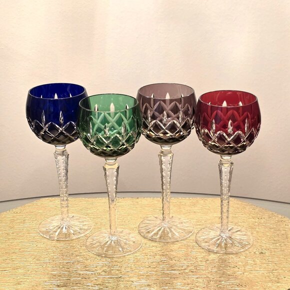 NEW AJKA ARABELLA SET 4 Cut Crystal Wine Goblets Stem Glass HUNGARY Hand Made