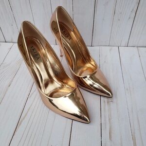 Brand new in original box AKIRA gold metallic pointy toe heels. Box includes extra set of heel tips. So hot!
