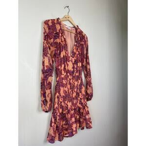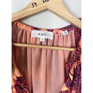 A.L.C. Silk Spli Neck Smocked Long Sleeve Callie Mini Dress Coral Pink Women's. New without tag!