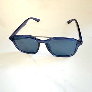 NEW ASOS Navy Blue Lens Oversize Square Aviator Sunglasses Silver Metal Band