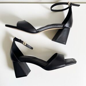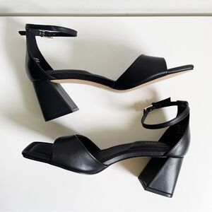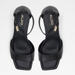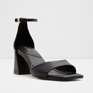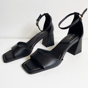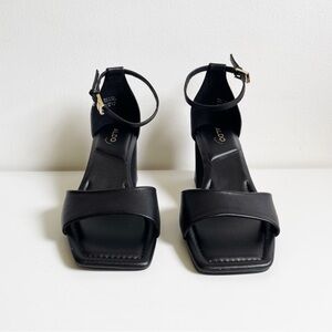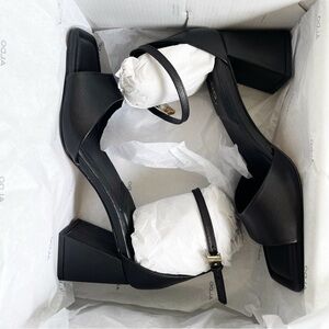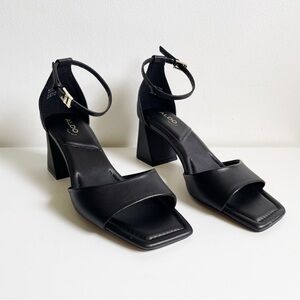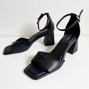 NEW ALDO Safdie Ankle strap heels sandal Block heel square toe black leather 8.5