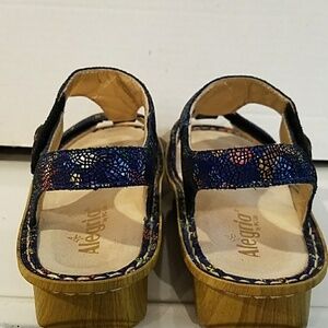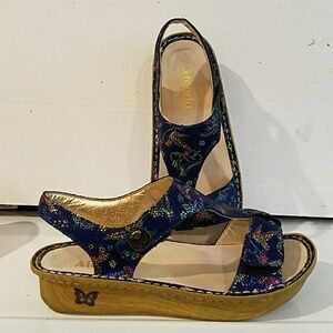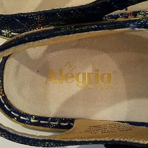 New - Alegria by PG Lite sandals (sz Euro 41 or US 10). Heel height 1-3/8". Velcro side & toe closure. Pattern of birds & flowers.