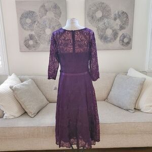AF5 (tags: evening, formal, night out, fancy, dress up, modest, bridesmaid, skirt, dress, gown, cocktail, wedding, mother of the bride, bolero, two piece, black tie, white tie, event, party, matching set, jacket, skirt, purple, eggplant, dark purple, midi, tea length, full length, knee length, 3/4 sleeve, three quarter zip, floral, lace, plus size, 14P, P14, size 14 petite, petite 14)