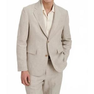 - Description: Meet the Cooper Blazer by Alex Mill, your go-to for a sophisticated, breathable look in Flex Linen. This men's blazer features long sleeves and is composed of 100% flax linen with a half cotton lining, ensuring maximum breathability and comfort in warmer climates. This solid pattern blazer boasts corozo buttons with a contrast backer, offering a touch of understated luxury. Designed with a collar neckline, you're advised to dry clean this timeless piece to maintain its crisp look.