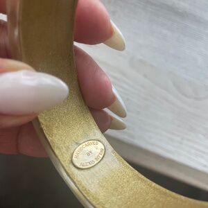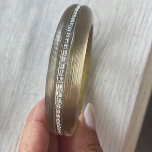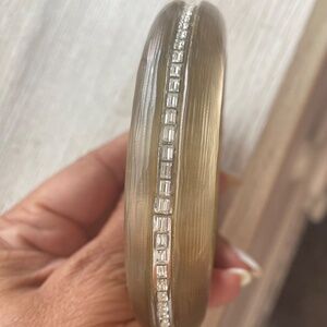 New! Never worn! Handcarved Alexis Bittar Gold- Champagne wide bangle. Baguette shaped crystals all around. Logo inside.