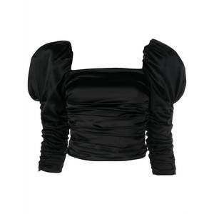 NEW ALICE + OLIVIA katrice 3/4 puff sleeve square neck ruched top blouse in blac